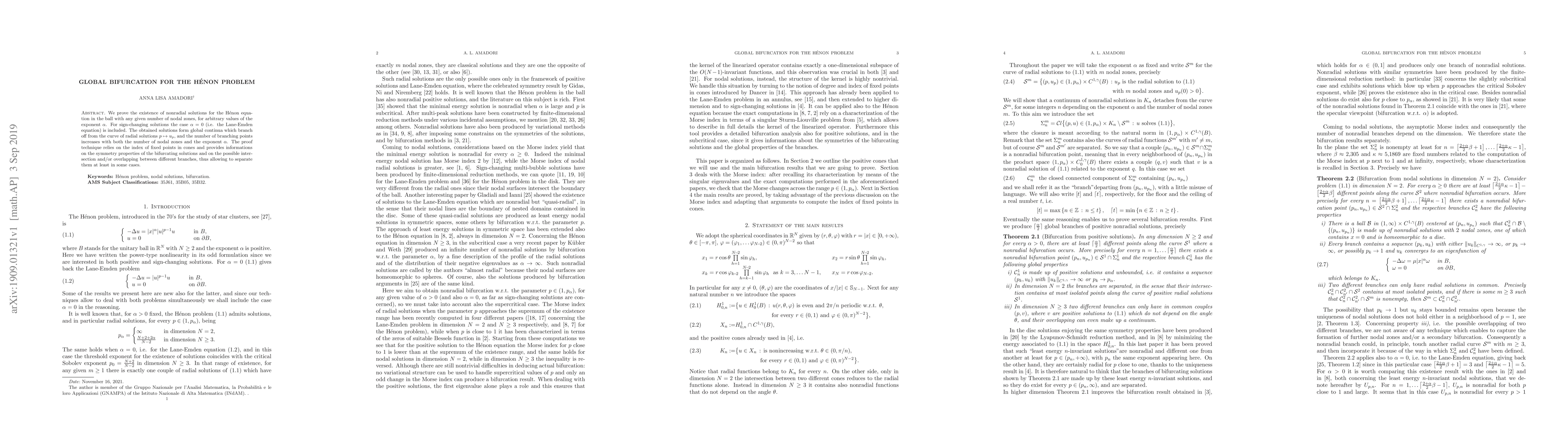 Researchers prove the existence of nonradial solutions for the Hénon equation with various nodal zones and exponents, revealing global bifurcation patterns that branch off from radial solutions.