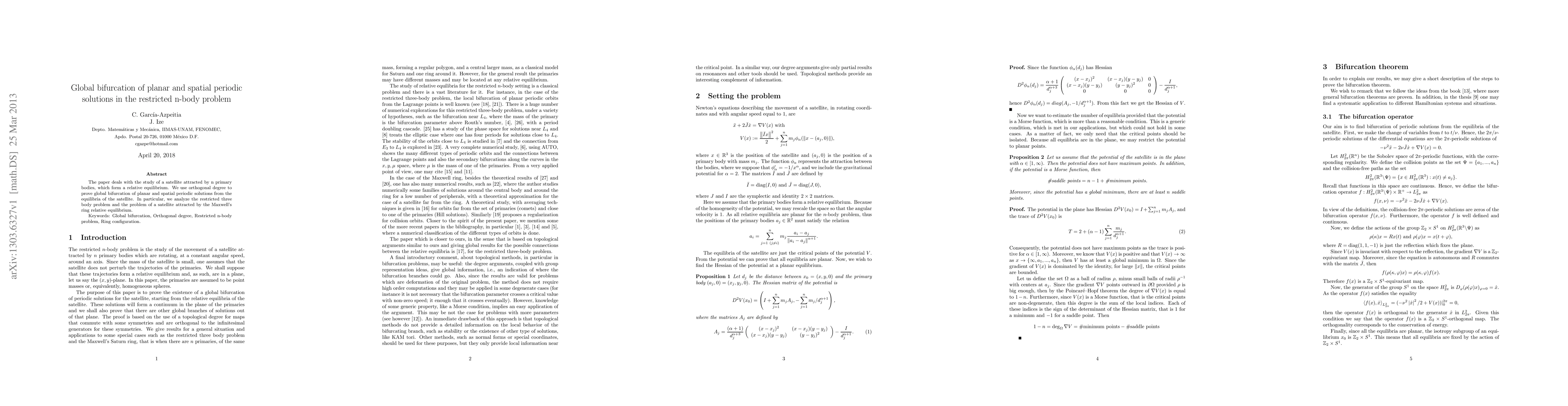The paper uses orthogonal degrees and bifurcation analysis to study periodic solutions in the restricted n-body problem, focusing on satellites attracted by primary bodies in relative equilibrium.