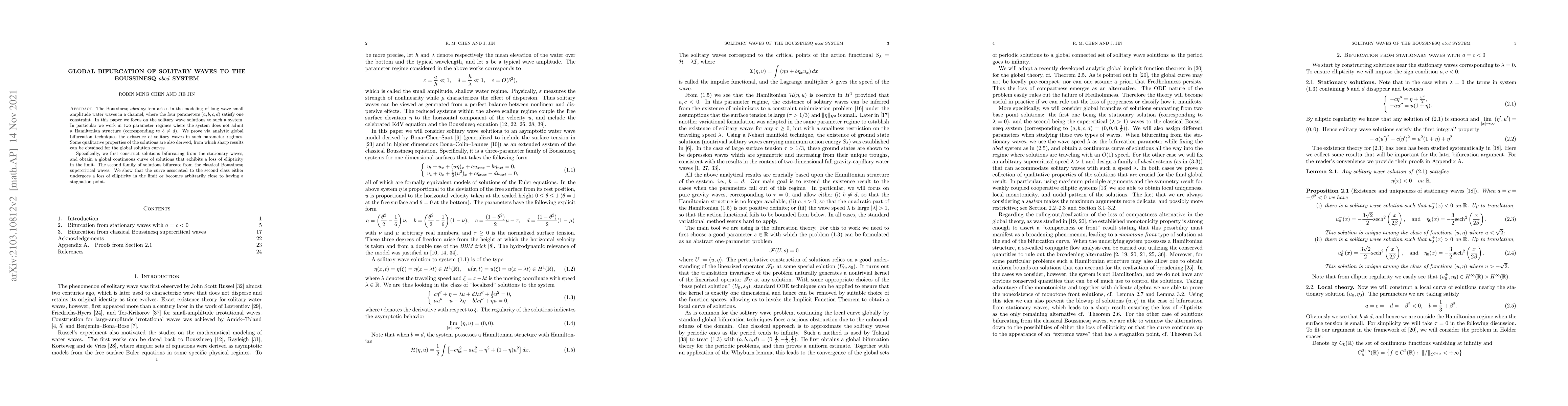 Researchers discovered global bifurcation patterns for solitary waves in a specific water wave model, showing new solutions emerge in certain parameter regimes with no Hamiltonian structure.