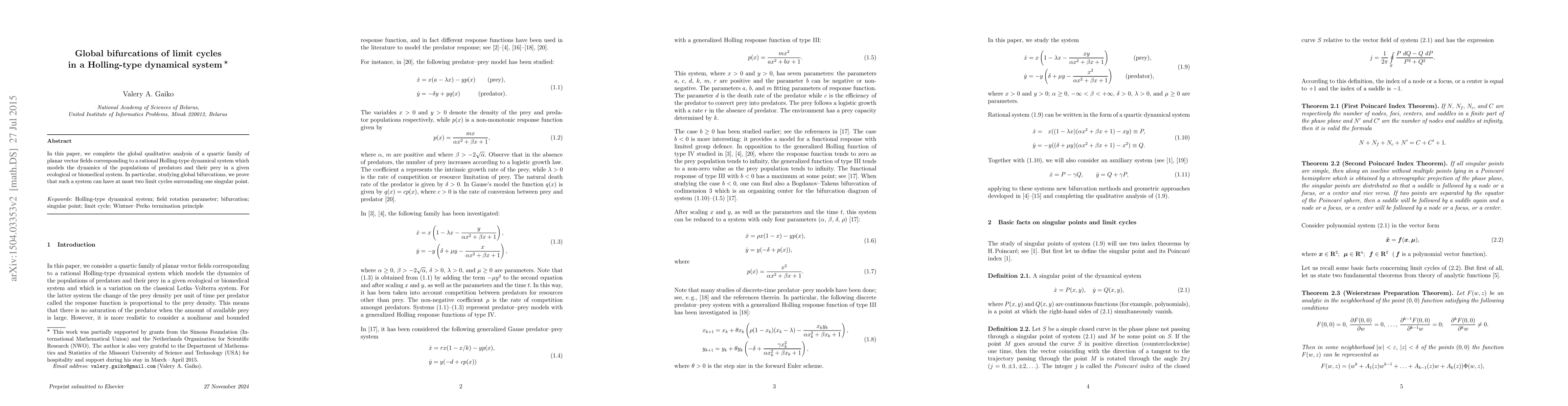 Researchers analyze a mathematical model of predator-prey systems, finding that it can have at most two limit cycles surrounding one singular point, marking the global bifurcations of these systems.