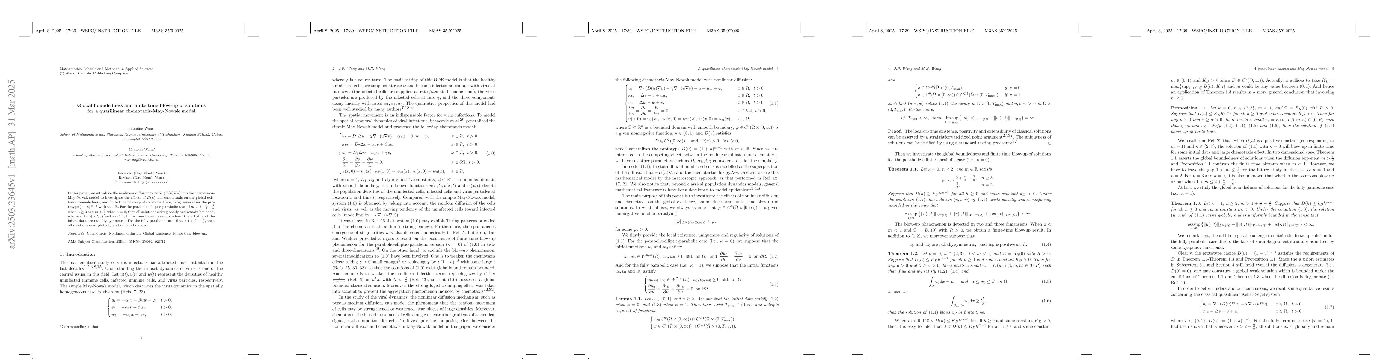 The paper extends the classical chemotaxis-May-Nowak model by introducing a generalized diffusion term $D(u)$, enabling a detailed analysis of global boundedness and finite time blow-up under varying conditions.