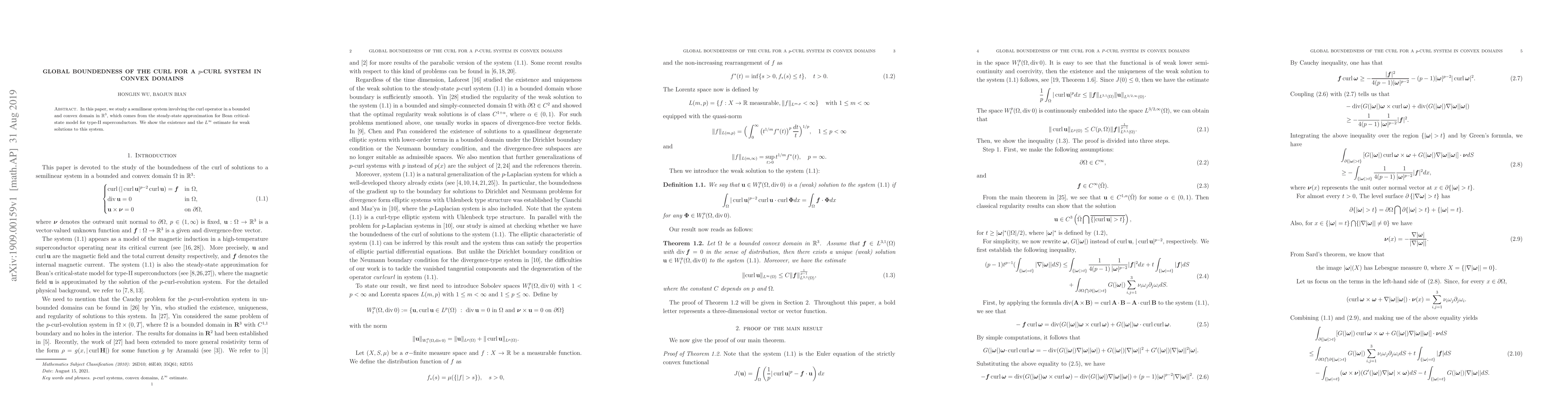 In this paper, we study a semilinear system involving the curl operator in a bounded and convex domain in $R^3$, which comes from the steady-state approximation for Bean critical-state model for type-II superconductors. We show the existence and the $L^{\infty}$ estimate for weak solutions to this system.