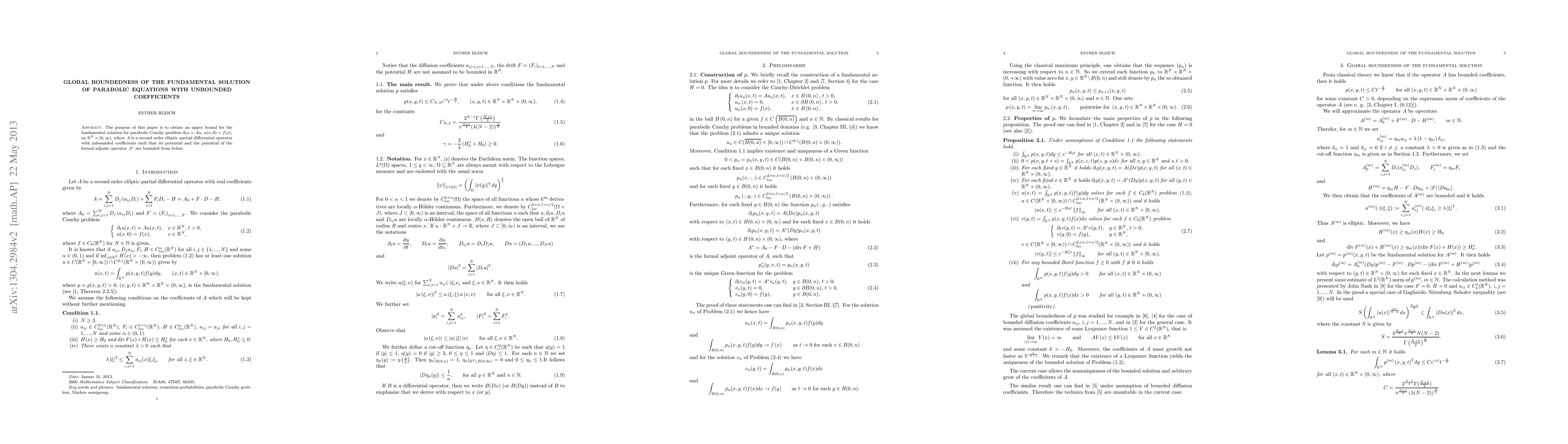This paper establishes an upper bound for the fundamental solution of the parabolic equation \( u' = Au \) with second-order elliptic operator \( A \) having unbounded coefficients, under the condition that both the potential and its adjoint's potential are bounded from below. The result ensures global boundedness of the solution.