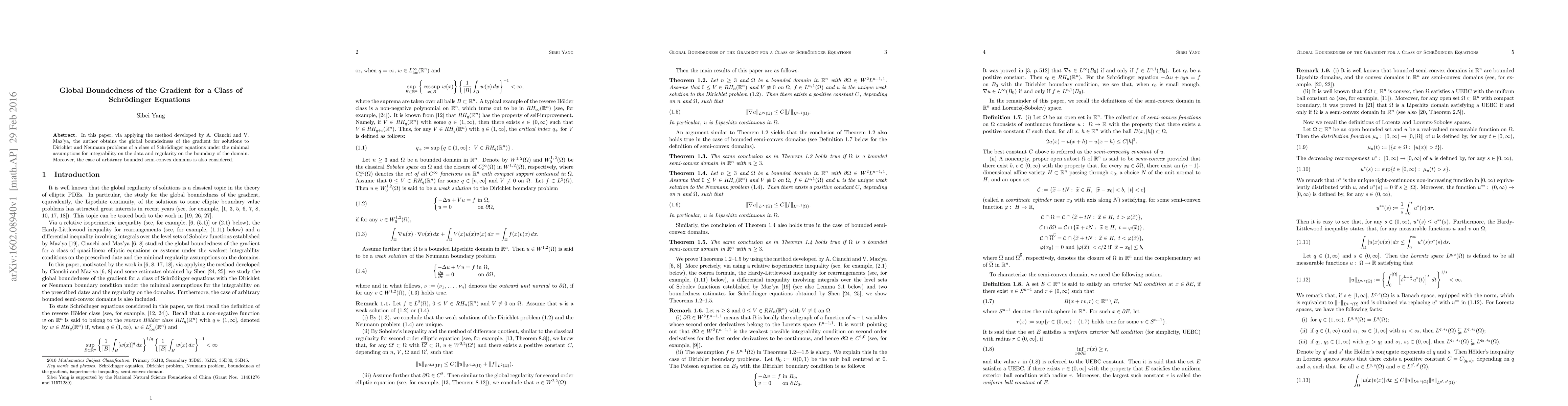 Researchers prove a class of Schr"odinger equations have globally bounded gradients under minimal assumptions, applicable to both Dirichlet and Neumann problems on semi-convex domains.