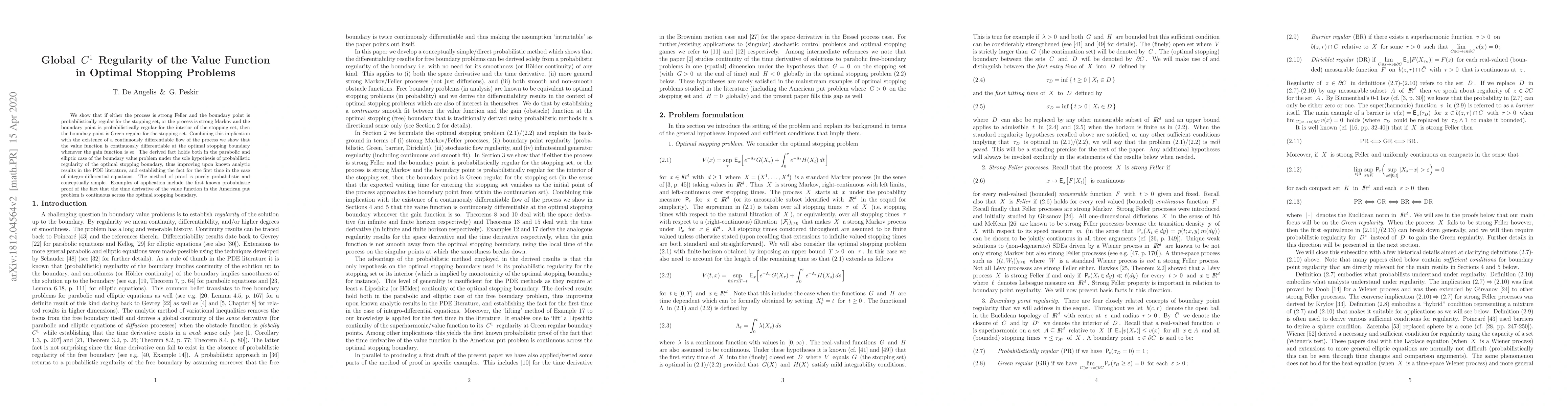 The paper proves that if a process is probabilistically regular at its optimal stopping boundary, then the value function is continuously differentiable at this boundary, improving upon known analytic results in PDE literature.