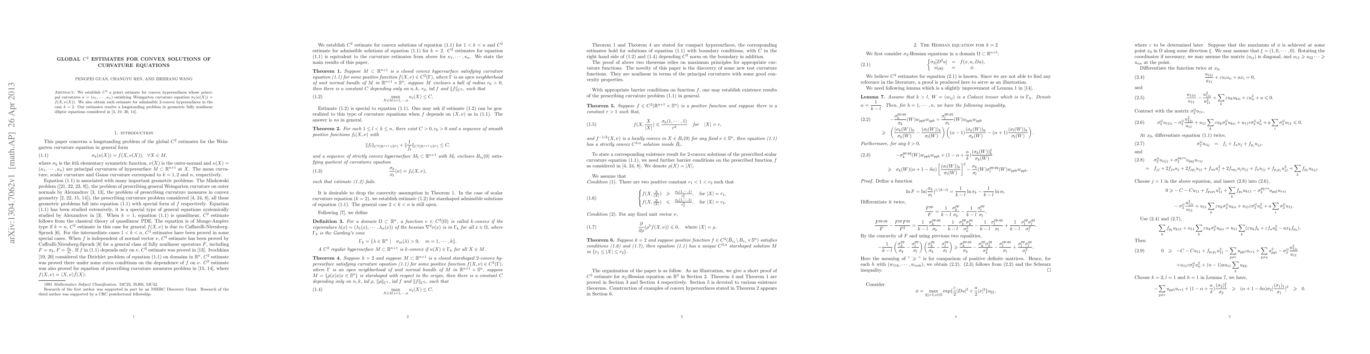 Researchers establish $C^2$ estimates for convex hypersurfaces solving curvature equations, resolving a longstanding problem in nonlinear elliptic equations.