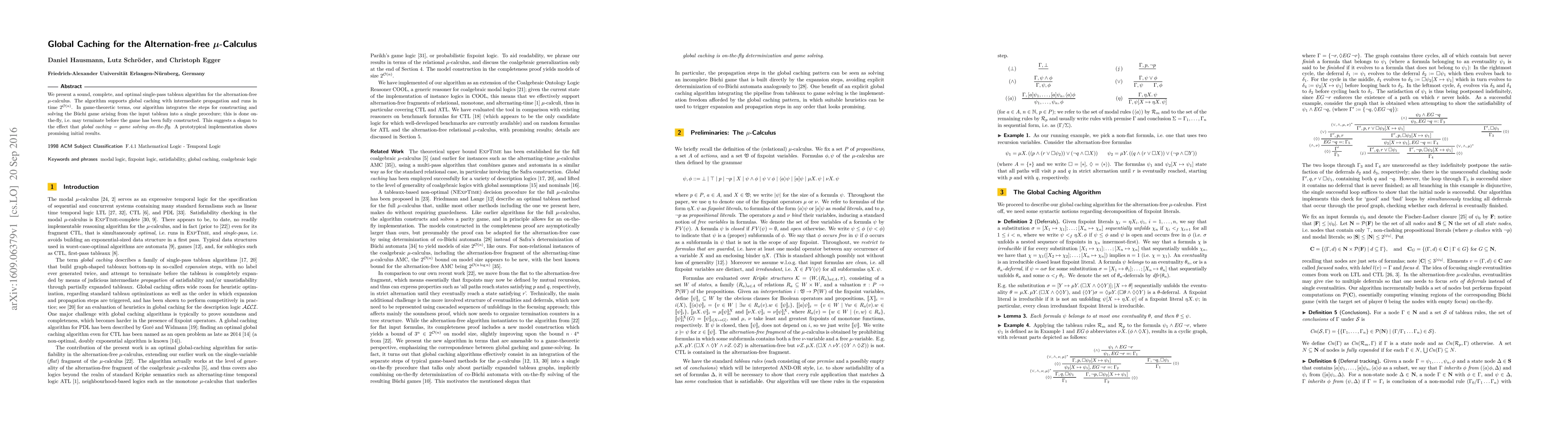 This paper introduces a sound, complete, and optimal single-pass tableau algorithm for the alternation-free $\mu$-calculus, featuring global caching and on-the-fly game solving, running in $2^{\mathcal{O}(n)}$ time. The algorithm integrates game construction and solving into one procedure, suggesting that global caching equates to solving games on-the-fly.