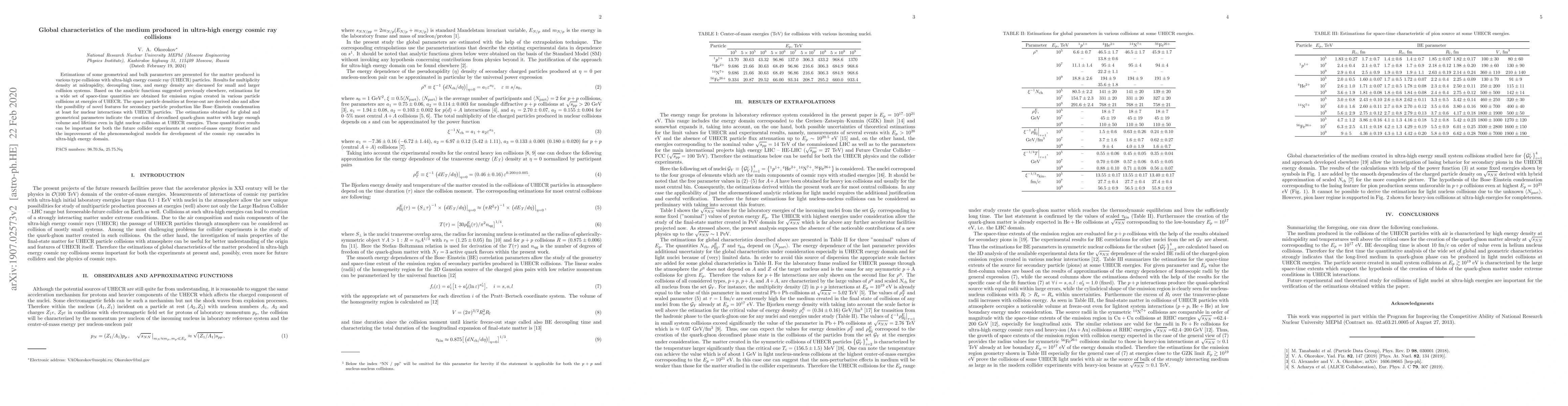 Researchers estimated key parameters of matter produced in ultra-high energy cosmic ray collisions, finding evidence for deconfined quark-gluon matter with large volume and lifetime even in small collisions.