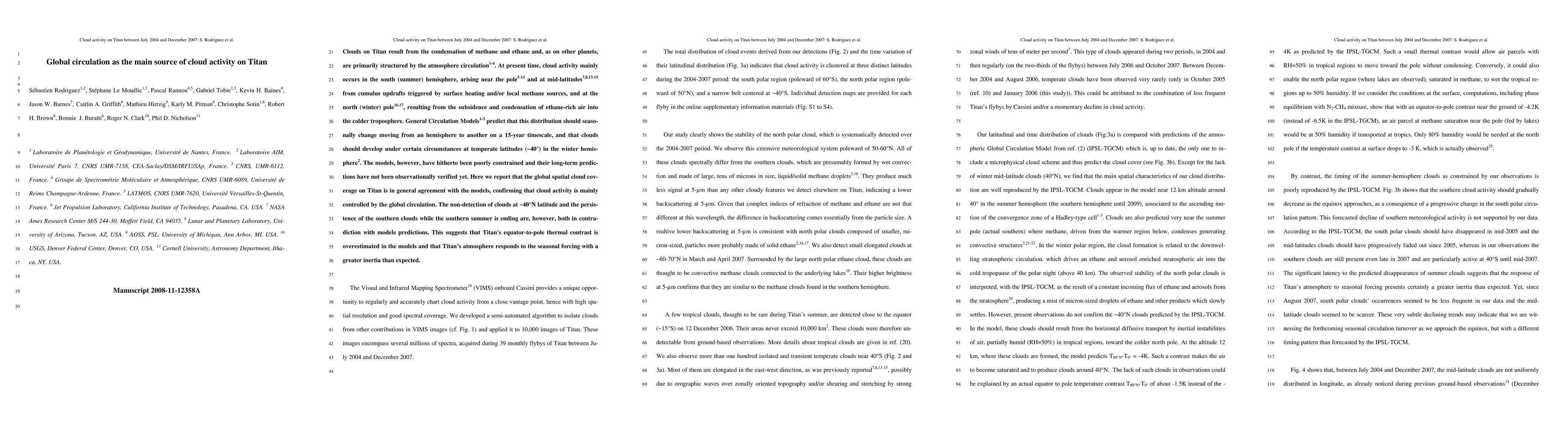 This research confirms that Titan's cloud activity is primarily driven by its global atmospheric circulation, aligning with model predictions. However, discrepancies in cloud formation at mid-latitudes and the persistence of southern clouds suggest that current models overestimate the equator-to-pole thermal contrast and underestimate the atmosphere's seasonal inertia.