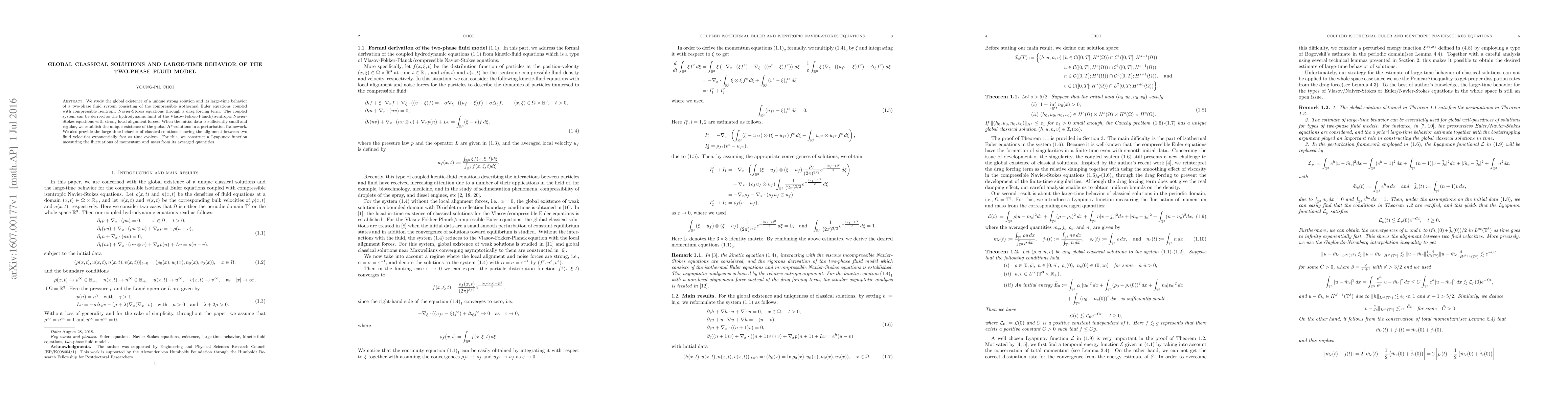 The paper presents a detailed proof of global classical solutions and provides a Lyapunov function to analyze the large-time behavior of the system, showcasing a robust mathematical approach to coupled fluid dynamics problems.