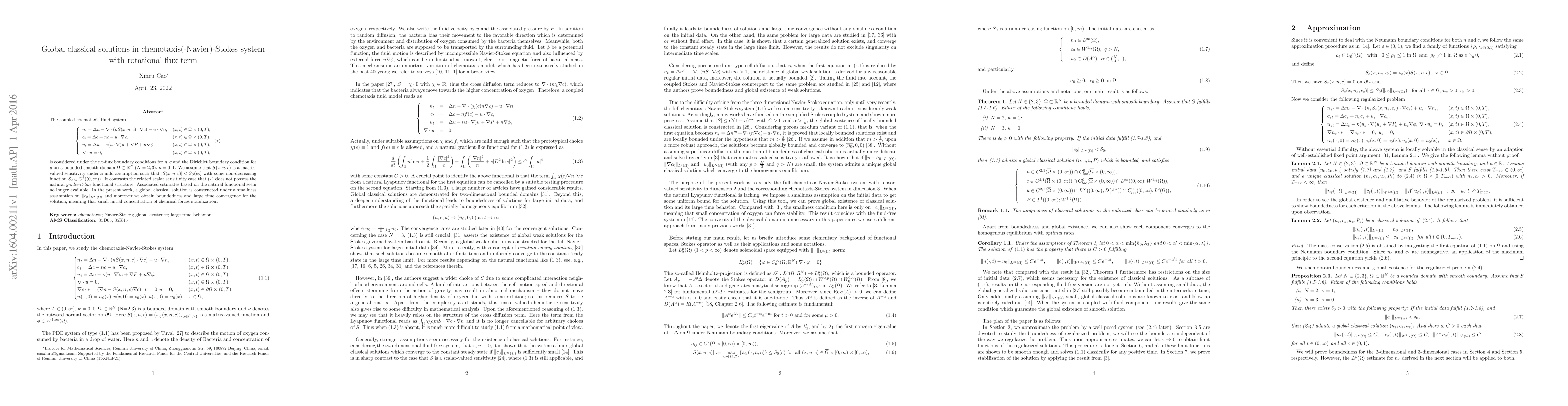 c , &(x,t)\in\Omega\times (0,T),\\ u_t=\Delta u-\kappa(u\cdot\nabla)u+\nabla