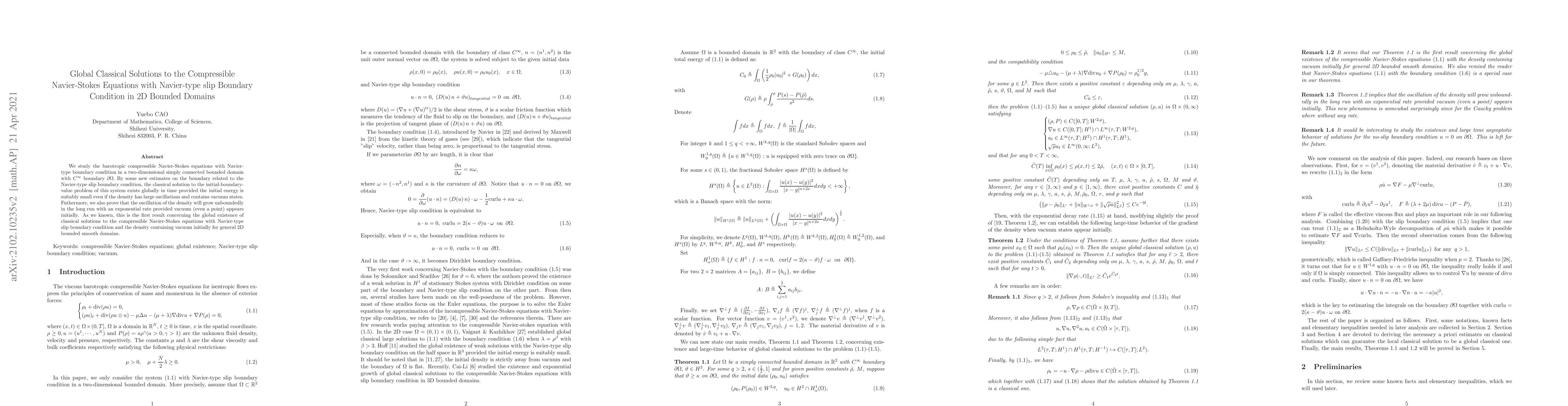 This paper establishes global classical solutions to the compressible Navier-Stokes equations in 2D bounded domains with Navier-type slip boundary conditions, provided the initial energy is small. It also shows that density oscillations grow exponentially if vacuum states are present initially.