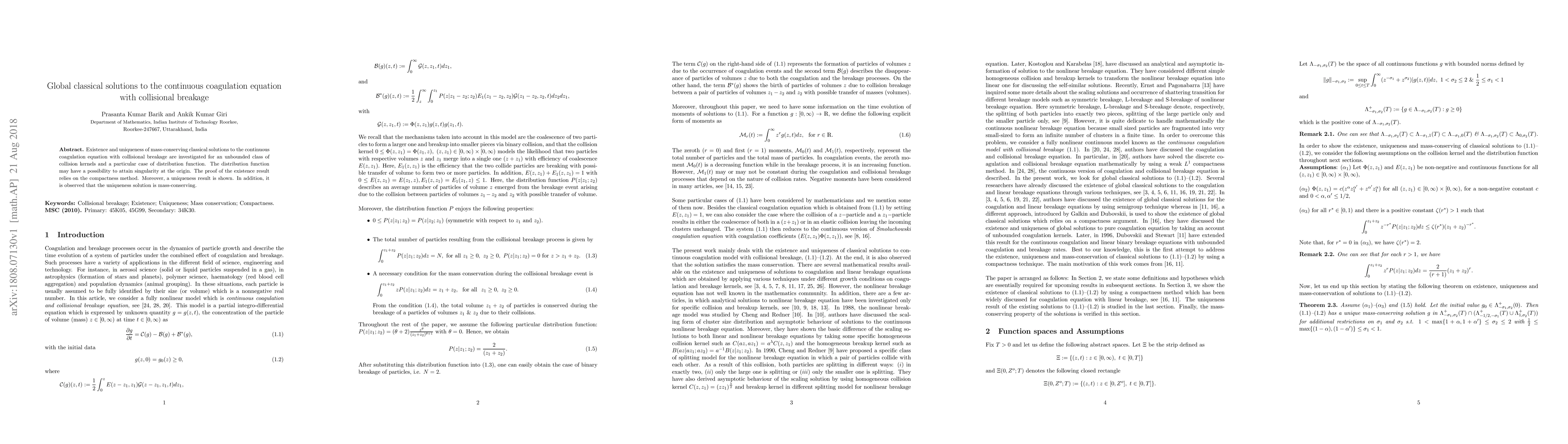 This paper investigates the existence and uniqueness of classical solutions to the continuous coagulation equation with collisional breakage, proving mass-conserving solutions for a broad class of collision kernels. The proof employs the compactness method, and the uniqueness of the solution is also demonstrated.