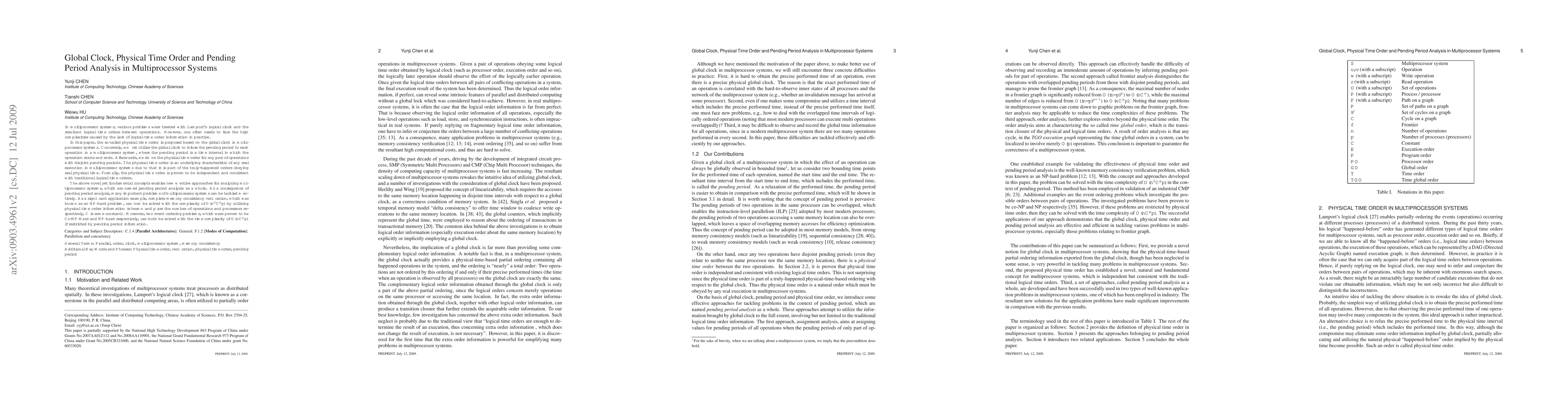 In multiprocessor systems, various problems are treated with Lamport's logical clock and the resultant logical time orders between operations. However, one often needs to face the high complexities caused by the lack of logical time order information in practice. In this paper, we utilize the \emph{global clock} to infuse the so-called \emph{pending period} to each operation in a multiprocessor system, where the pending period is a time interval that contains the performed time of the operation. Further, we define the \emph{physical time order} for any two operations with disjoint pending periods. The physical time order is obeyed by any real execution in multiprocessor systems due to that it is part of the truly happened operation orders restricted by global clock, and it is then proven to be independent and consistent with traditional logical time orders. The above novel yet fundamental concepts enables new effective approaches for analyzing multiprocessor systems, which are named \emph{pending period analysis} as a whole. As a consequence of pending period analysis, many important problems of multiprocessor systems can be tackled effectively. As a significant application example, complete memory consistency verification, which was known as an NP-hard problem, can be solved with the complexity of $O(n^2)$ (where $n$ is the number of operations). Moreover, the two event ordering problems, which were proven to be Co-NP-Hard and NP-hard respectively, can both be solved with the time complexity of O(n) if restricted by pending period information.