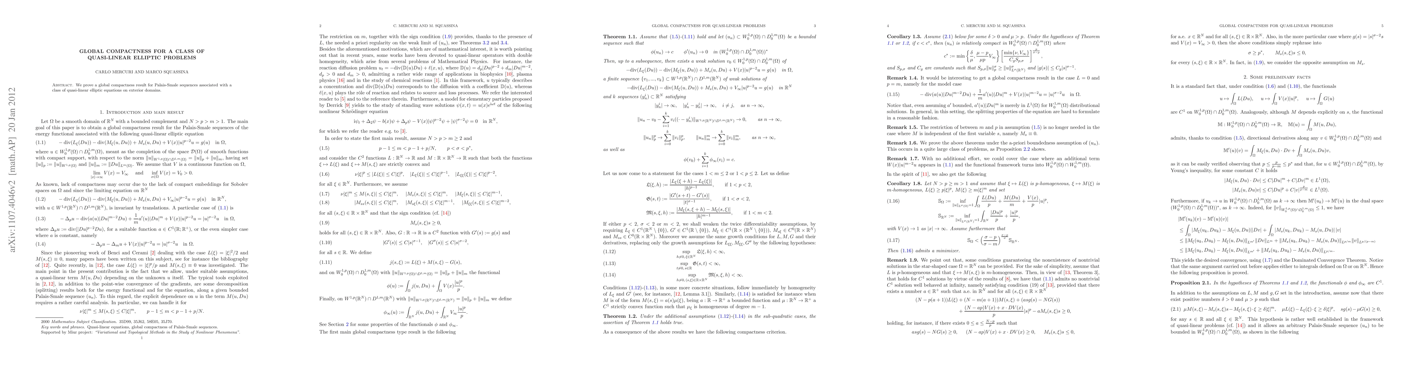 Summary: This paper establishes a global compactness result for Palais-Smale sequences linked to quasi-linear elliptic equations on exterior domains, ensuring the convergence of solutions.
