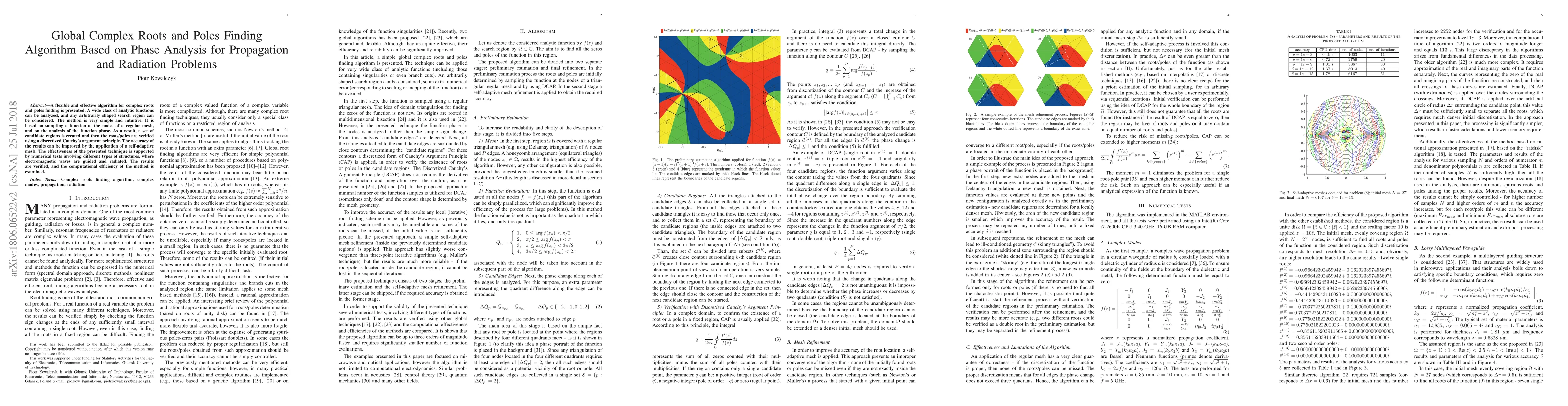 A flexible and effective algorithm for complex roots and poles finding is presented. A wide class of analytic functions can be analyzed, and any arbitrarily shaped search region can be considered. The method is very simple and intuitive. It is based on sampling a function at the nodes of a regular mesh, and on the analysis of the function phase. As a result, a set of candidate regions is created and then the roots/poles are verified using a discretized Cauchy's argument principle. The accuracy of the results can be improved by the application of a self-adaptive mesh. The effectiveness of the presented technique is supported by numerical tests involving different types of structures, where electromagnetic waves are guided and radiated. The results are verified, and the computational efficiency of the method is examined.