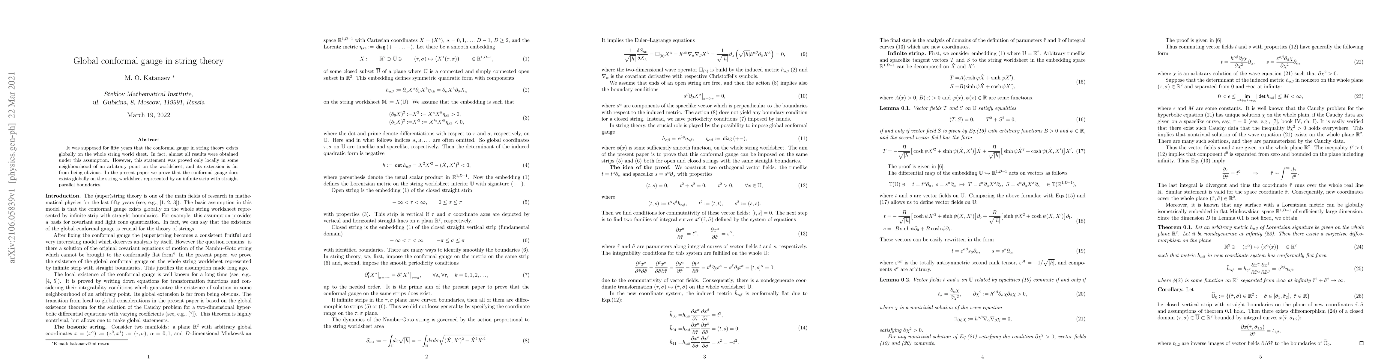 The paper proves the global existence of the conformal gauge in string theory on a worldsheet represented as an infinite strip, extending prior local proofs and confirming long-held assumptions. This finding impacts various string theory calculations previously based on the local assumption.