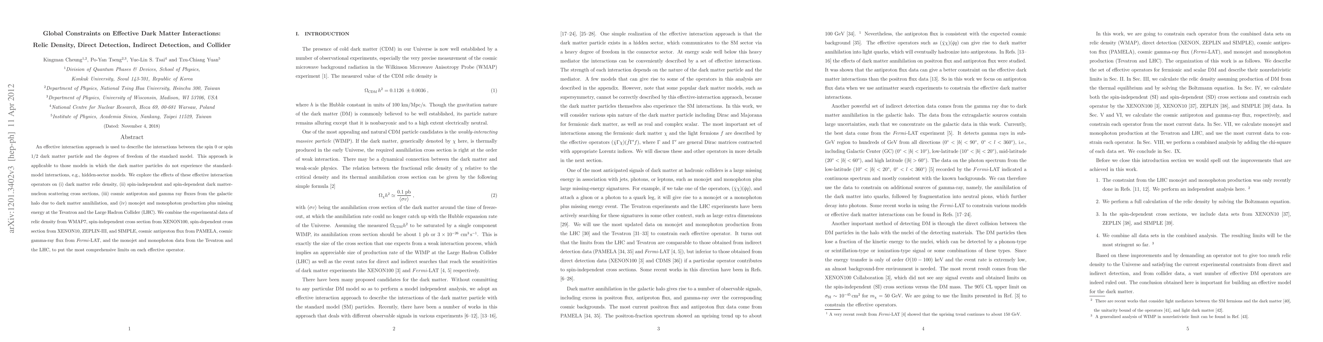 This paper employs an effective interaction framework to study dark matter's influence on relic density, direct and indirect detection, and collider phenomena. It combines experimental data to derive stringent constraints on various effective operators governing dark matter interactions.