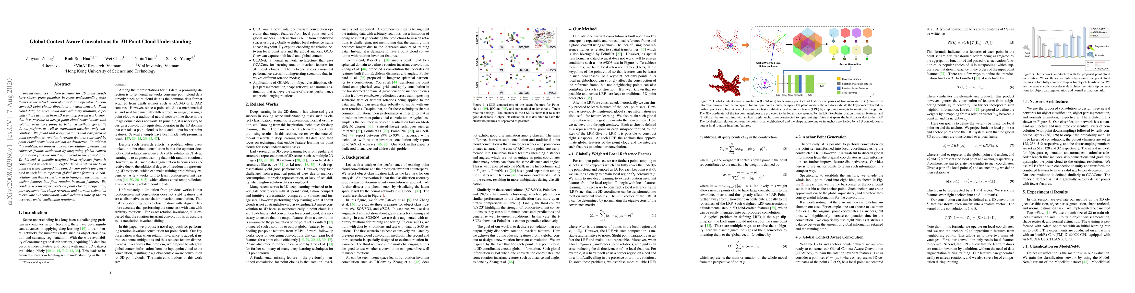 This paper proposes a novel global context aware convolution operator for 3D point cloud understanding, enhancing feature distinction by integrating global context information. Experiments show it achieves state-of-the-art accuracy in tasks like classification, part segmentation, shape retrieval, and normals estimation under challenging rotations.