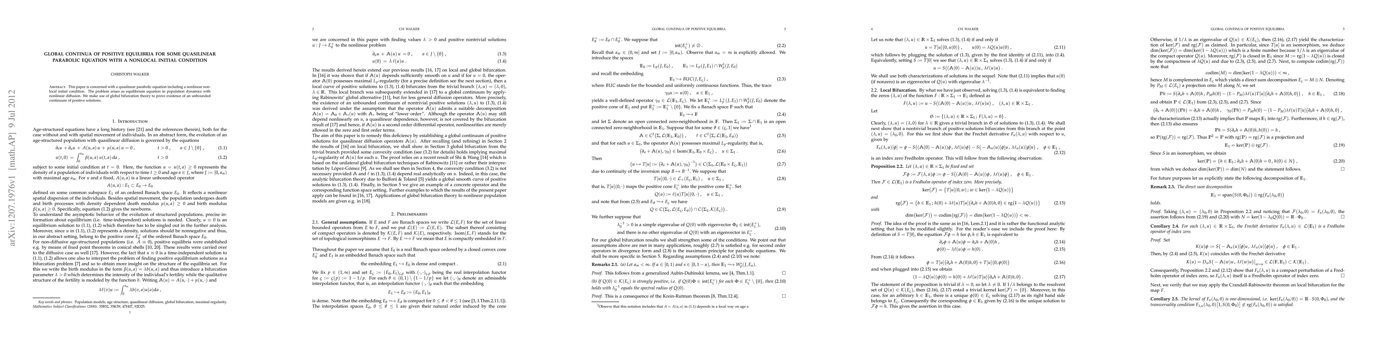 Summary: This paper explores a quasilinear parabolic equation with a nonlocal initial condition, demonstrating the existence of an unbounded continuum of positive equilibria through global bifurcation theory, relevant to population dynamics with nonlinear diffusion.