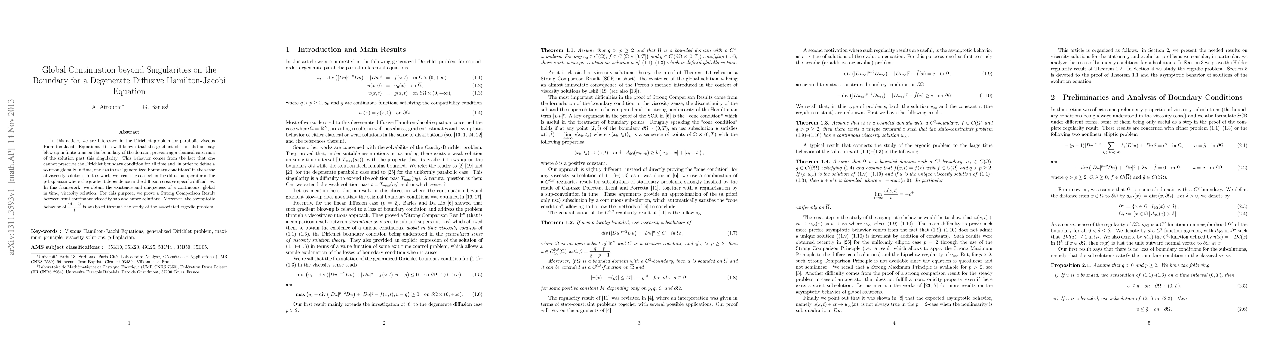 In this article, we are interested in the Dirichlet problem for parabolic viscous Hamilton-Jacobi Equations. It is well-known that the gradient of the solution may blow up in finite time on the boundary of the domain, preventing a classical extension of the solution past this singularity. This behavior comes from the fact that one cannot prescribe the Dirichlet boundary condition for all time and, in order to define a solution globally in time, one has to use "generalized boundary conditions" in the sense of viscosity solution. In this work, we treat the case when the diffusion operator is the $p$-Laplacian where the gradient dependence in the diffusion creates specific difficulties. In this framework, we obtain the existence and uniqueness of a continuous, global in time, viscosity solution. For this purpose, we prove a Strong Comparison Result between semi-continuous viscosity sub and super-solutions. Moreover, the asymptotic behavior of $\dfrac{u(x; t)}{t}$ is analyzed through the study of the associated ergodic problem.