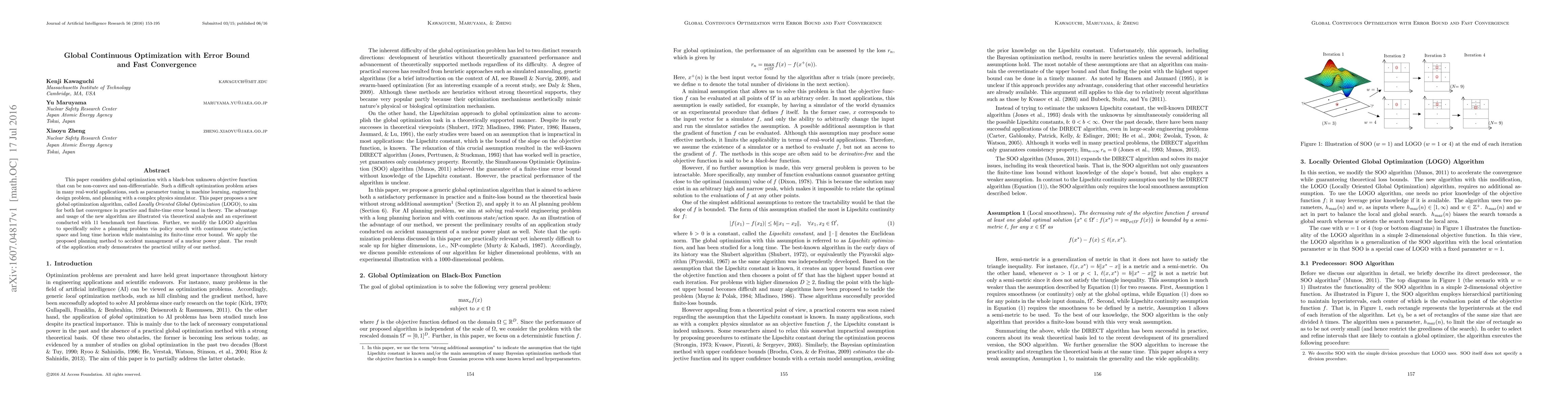 This paper introduces a new global optimization algorithm, LOGO, designed for black-box non-convex and non-differentiable functions, achieving fast convergence and finite-time error bounds. The method is tested on benchmark functions and applied to nuclear power plant accident management planning, showing practical utility.