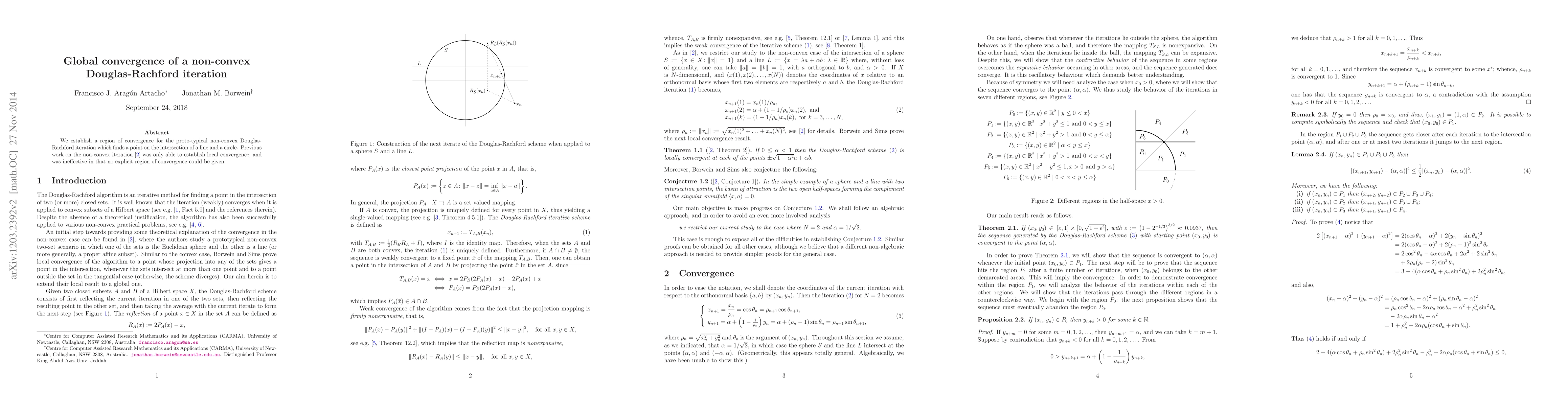 Researchers established a region of convergence for the non-convex Douglas-Rachford iteration, allowing for global optimization in finding intersection points between lines and circles, building on previous local convergence findings.