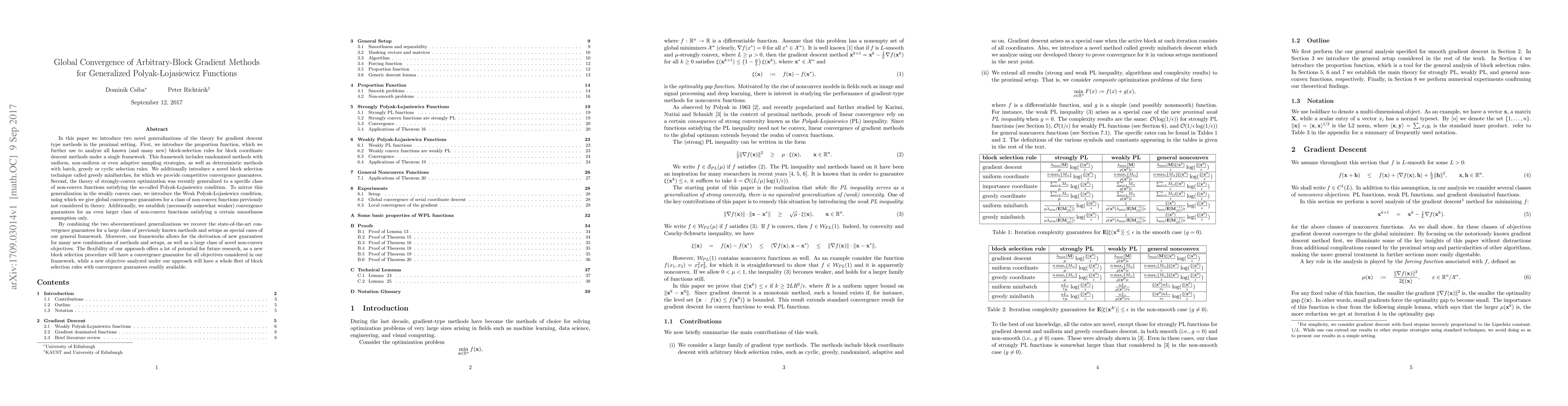 In this paper we introduce two novel generalizations of the theory for gradient descent type methods in the proximal setting. First, we introduce the proportion function, which we further use to analyze all known (and many new) block-selection rules for block coordinate descent methods under a single framework. This framework includes randomized methods with uniform, non-uniform or even adaptive sampling strategies, as well as deterministic methods with batch, greedy or cyclic selection rules. Second, the theory of strongly-convex optimization was recently generalized to a specific class of non-convex functions satisfying the so-called Polyak-{\L}ojasiewicz condition. To mirror this generalization in the weakly convex case, we introduce the Weak Polyak-{\L}ojasiewicz condition, using which we give global convergence guarantees for a class of non-convex functions previously not considered in theory. Additionally, we establish (necessarily somewhat weaker) convergence guarantees for an even larger class of non-convex functions satisfying a certain smoothness assumption only. By combining the two abovementioned generalizations we recover the state-of-the-art convergence guarantees for a large class of previously known methods and setups as special cases of our general framework. Moreover, our frameworks allows for the derivation of new guarantees for many new combinations of methods and setups, as well as a large class of novel non-convex objectives. The flexibility of our approach offers a lot of potential for future research, as a new block selection procedure will have a convergence guarantee for all objectives considered in our framework, while a new objective analyzed under our approach will have a whole fleet of block selection rules with convergence guarantees readily available.