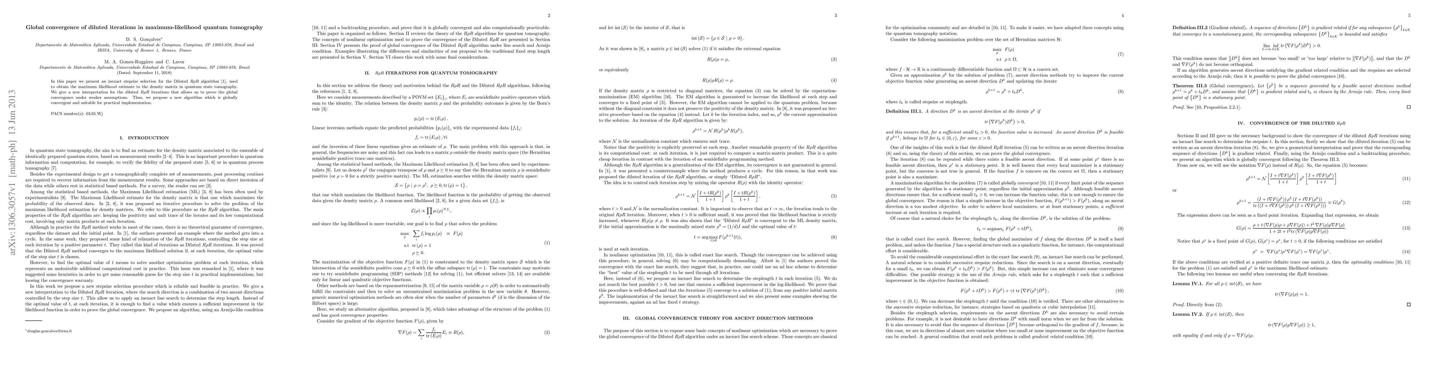 This paper presents an inexact stepsize selection method for the Diluted RρR algorithm, achieving global convergence under weaker assumptions for maximum-likelihood quantum state tomography. The new interpretation of the diluted iterations leads to a globally convergent algorithm suitable for practical use.