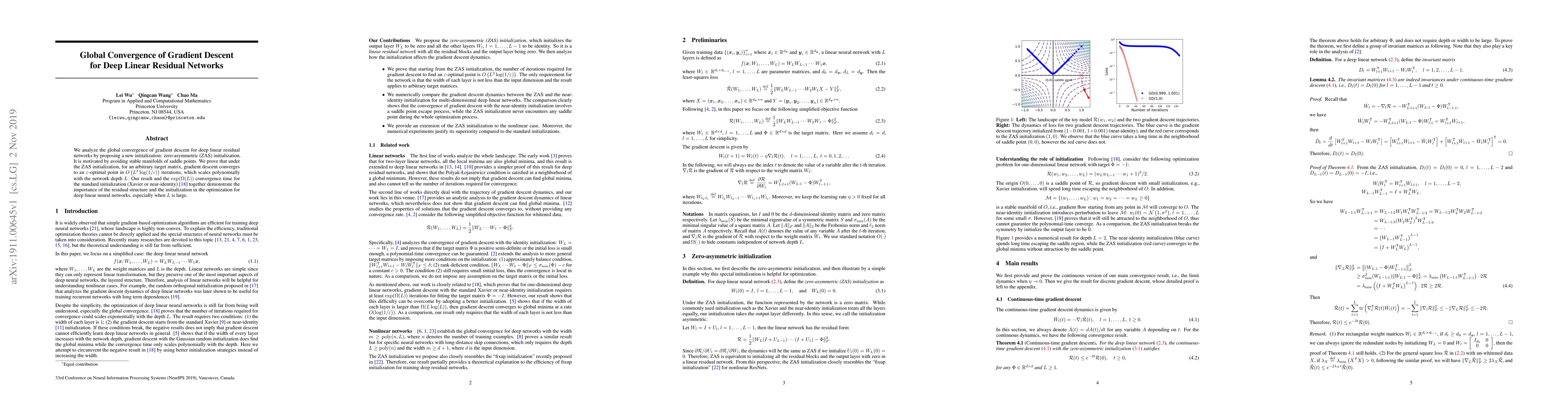 This paper proposes a new zero-asymmetric (ZAS) initialization method for deep linear residual networks, demonstrating that gradient descent converges globally to an $\varepsilon$-optimal point in polynomial time with respect to network depth, contrasting sharply with the exponential time convergence under standard initializations.