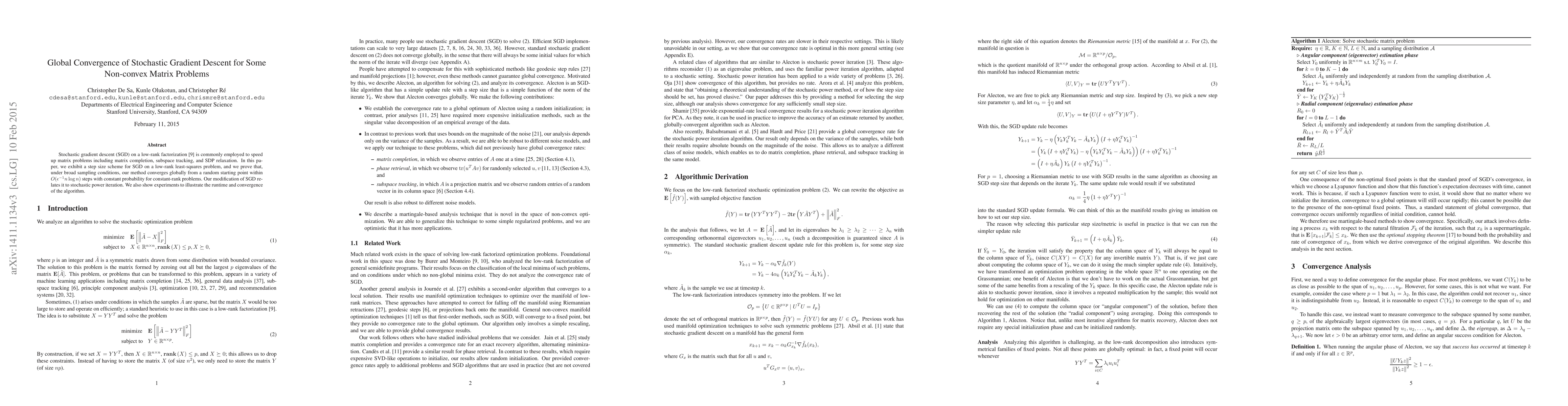 The paper presents a step size scheme for Stochastic Gradient Descent (SGD) applied to a low-rank least-squares problem, proving global convergence under broad sampling conditions.