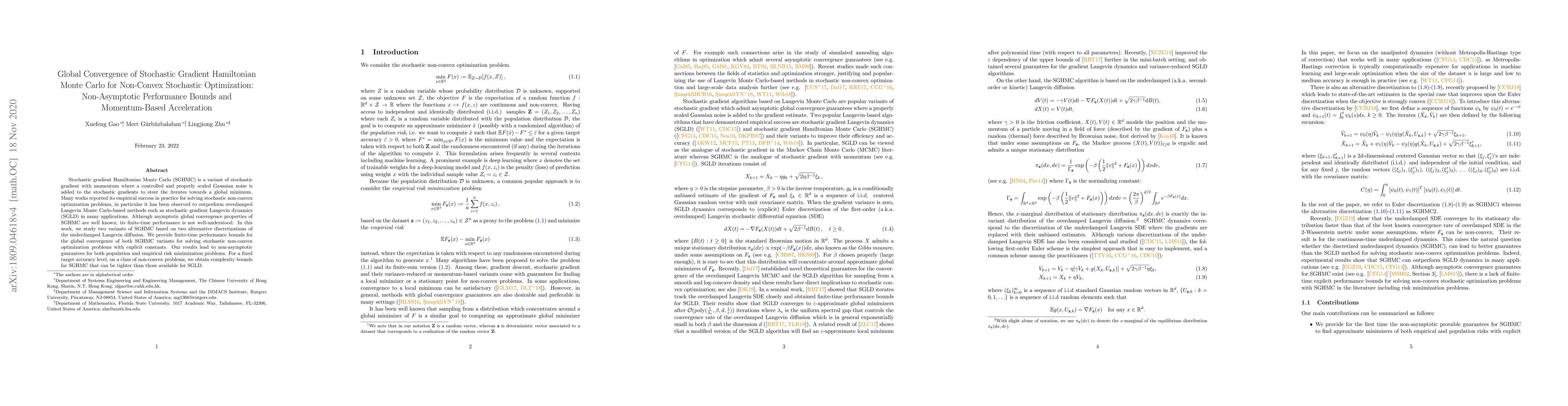 This paper investigates the finite-time performance of Stochastic Gradient Hamiltonian Monte Carlo (SGHMC) for non-convex optimization, providing non-asymptotic convergence bounds and demonstrating its superior complexity compared to stochastic gradient Langevin dynamics (SGLD). It highlights the effectiveness of momentum-based acceleration in achieving global convergence.