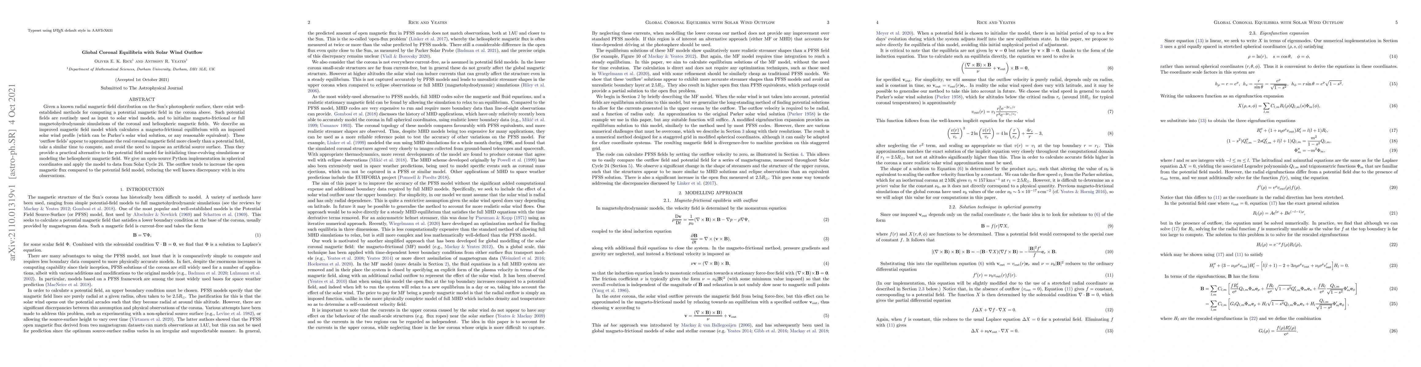 Given a known radial magnetic field distribution on the Sun's photospheric surface, there exist well-established methods for computing a potential magnetic field in the corona above. Such potential fields are routinely used as input to solar wind models, and to initialize magneto-frictional or full magnetohydrodynamic simulations of the coronal and heliospheric magnetic fields. We describe an improved magnetic field model which calculates a magneto-frictional equilibrium with an imposed solar wind profile (which can be Parker's solar wind solution, or any reasonable equivalent). These `outflow fields' appear to approximate the real coronal magnetic field more closely than a potential field, take a similar time to compute, and avoid the need to impose an artificial source surface. Thus they provide a practical alternative to the potential field model for initializing time-evolving simulations or modeling the heliospheric magnetic field. We give an open-source Python implementation in spherical coordinates and apply the model to data from Solar Cycle 24. The outflow tends to increase the open magnetic flux compared to the potential field model, reducing the well known discrepancy with in situ observations.