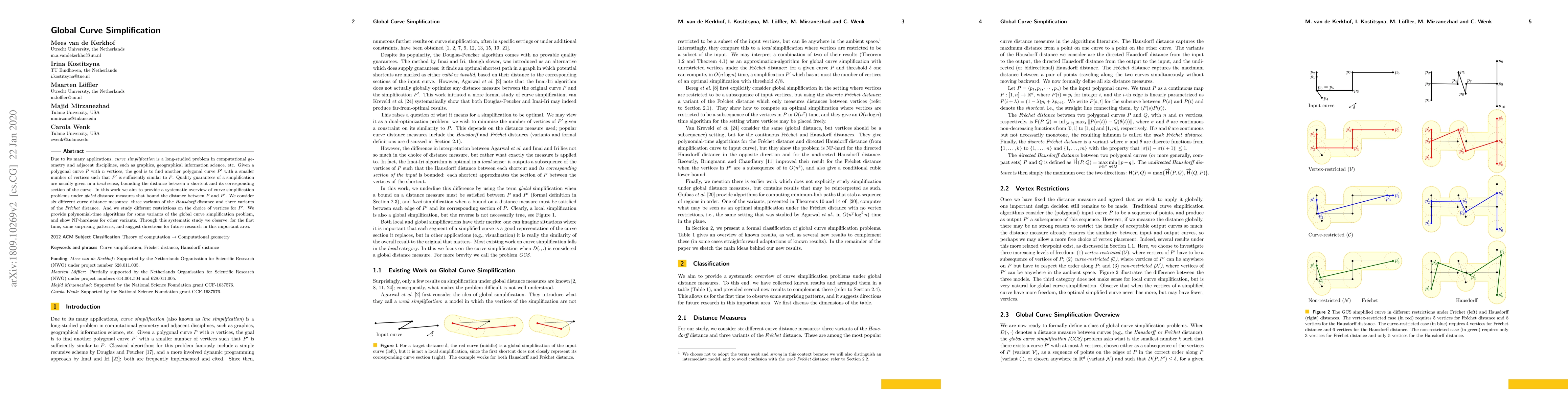 This paper provides a comprehensive review of global curve simplification methods, focusing on six distance measures to quantify the similarity between simplified and original curves. It presents polynomial-time algorithms for some simplification variants while proving NP-hardness for others, revealing new patterns and suggesting future research directions.
