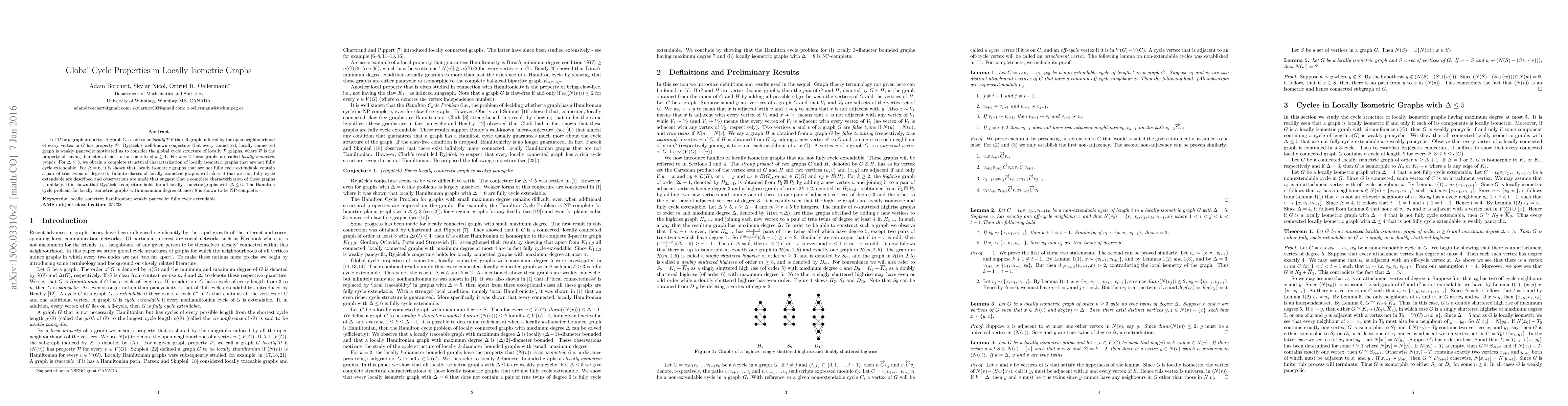 A graph G is locally isometric if the subgraph induced by the neighbourhood of every vertex is an isometric subgraph of G. It is shown that the hamilton cycle problem for locally isometric graphs with maximum degree at most 8 is NP-complete. Structural characterizations of locally isometric graphs, with maximum degree at most 6, that are fully cycle extendable, are established and these results are used to show that locally isometric graphs with maximum degree at most 6 are weakly pancyclic. This proves Ryjacek's conjecture for a subclass of locally connected graphs.