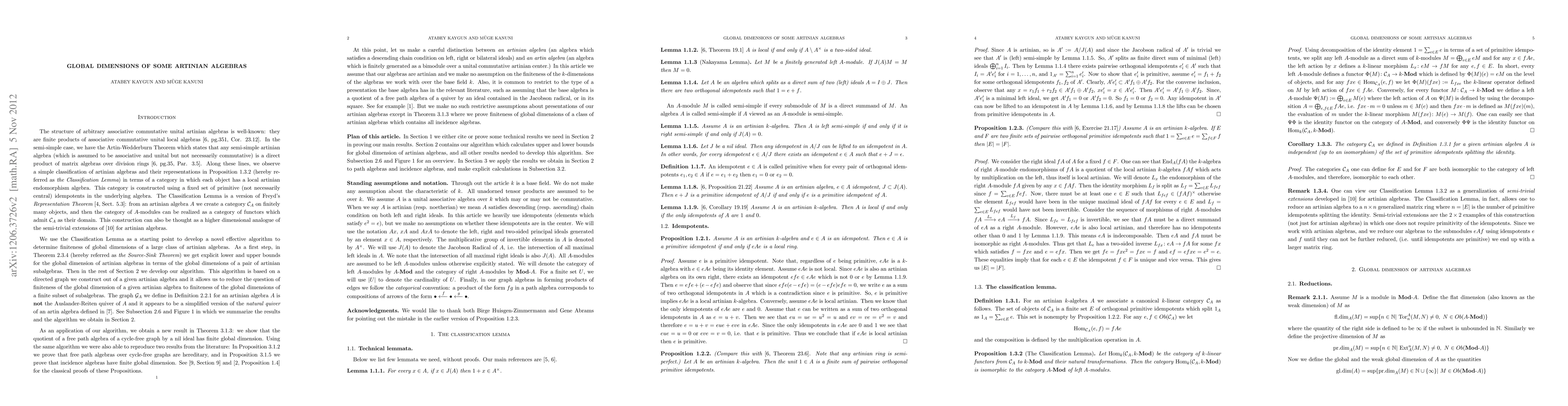 This paper develops an algorithm for determining the global dimensions of a class of artinian algebras using a directed graph and provides bounds for these dimensions based on a finite subset of their artinian subalgebras. The algorithm helps decide whether an artinian algebra has finite global dimension in many cases.