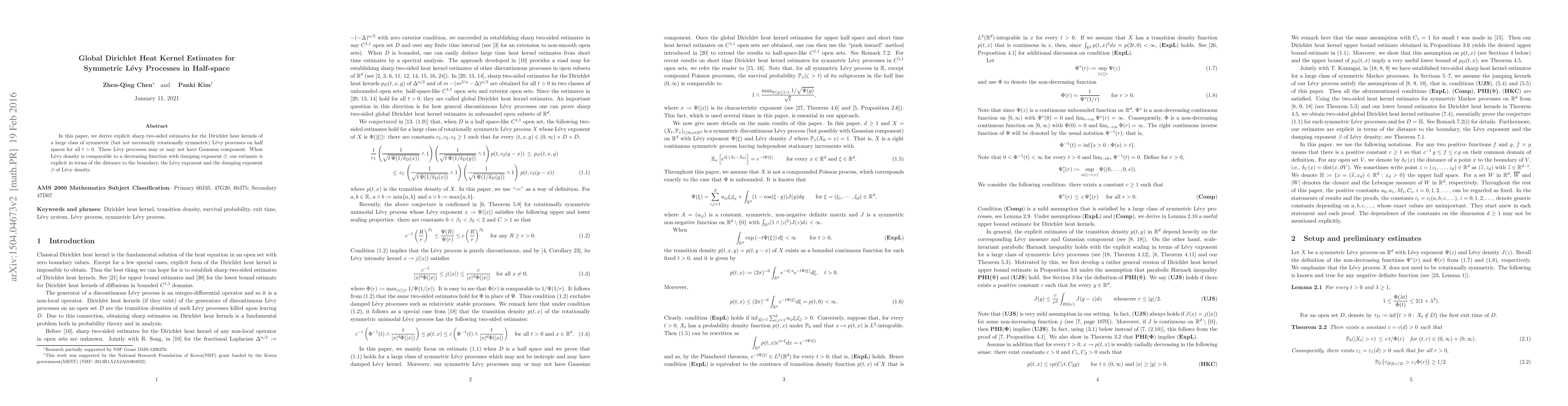 In this paper, we derive explicit sharp two-sided estimates for the Dirichlet heat kernels of a large class of symmetric (but not necessarily rotationally symmetric) L\'evy processes on half spaces for all $t>0$. These L\'evy processes may or may not have Gaussian component. When L\'evy density is comparable to a decreasing function with damping exponent $\beta$,our estimate is explicit in terms of the distance to the boundary, the L\'evy exponent and the damping exponent $\beta$ of L\'evy density.