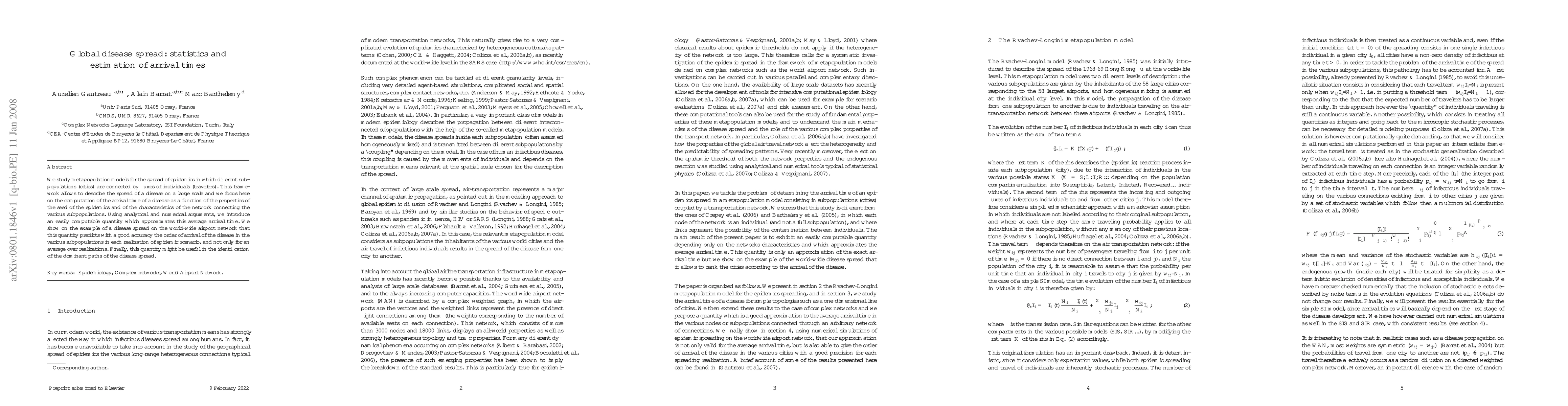 This paper develops metapopulation models to estimate the arrival times of epidemics across connected subpopulations, introducing a computable metric for predicting disease spread. It demonstrates the model's accuracy using the worldwide airport network, highlighting its potential for identifying key transmission routes.