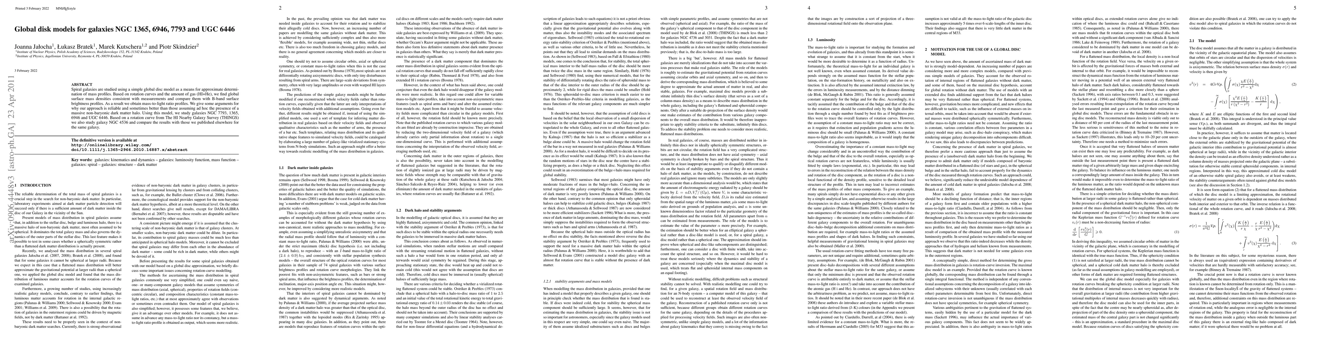 This research applies a global disc model to spiral galaxies, including NGC 1365, NGC 6946, NGC 7793, and UGC 6446, to approximate mass profiles using rotation curves and gas measurements. The methodology yields surface mass densities consistent with existing data, and mass-to-light ratio profiles. The study argues for the reliability of this approach compared to assuming dark matter halos, also comparing results for galaxy NGC 4536 from THINGS survey data.