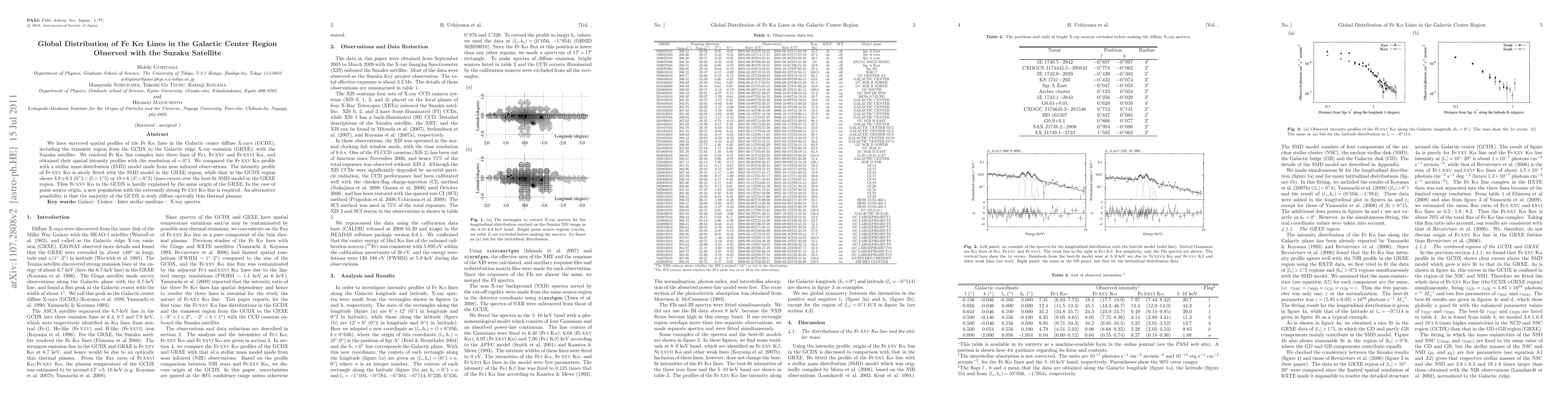 This study uses the Suzaku satellite to survey Fe K$\alpha$ lines in the Galactic center diffuse X-rays, resolving them into three types and comparing their spatial profiles. The Fe \emissiontype{XXV} K$\alpha$ profile shows significant excess in the Galactic center region compared to the Galactic ridge, suggesting a different origin than the ridge emission.