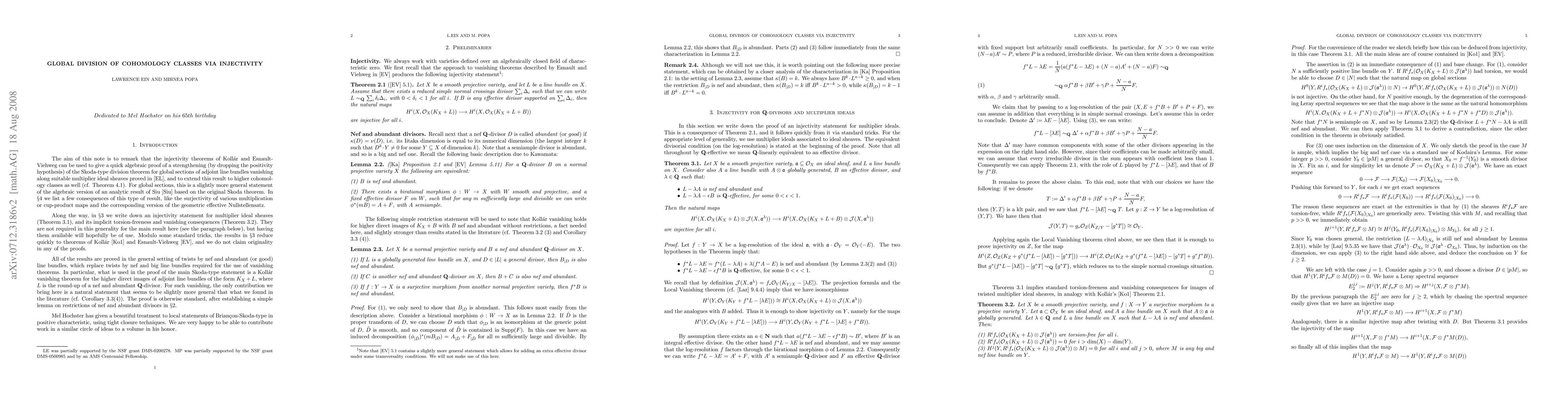 This research provides an algebraic proof of a division theorem, extending its applicability to higher cohomology classes, which is significant for understanding the behavior of global sections and cohomology classes in algebraic geometry.