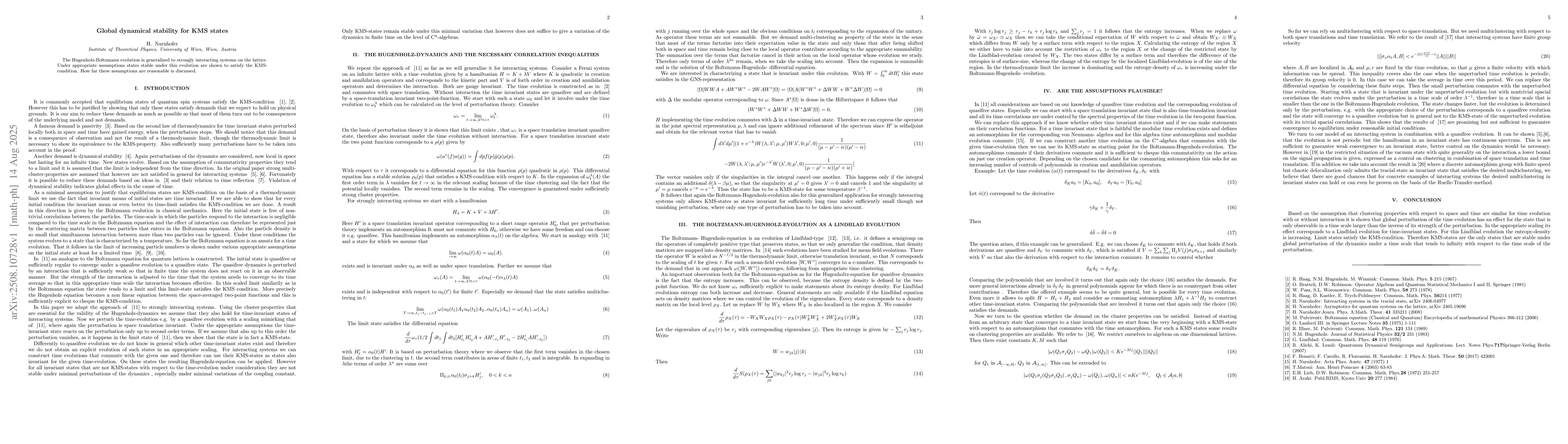 The Hugenholz-Boltzmann-evolution is generalized to strongly interacting systems on the lattice. Under appropriate assumptions states stable under this evolution are shown to satify the KMS-condition. How far these assumptions are reasonable is discussed.