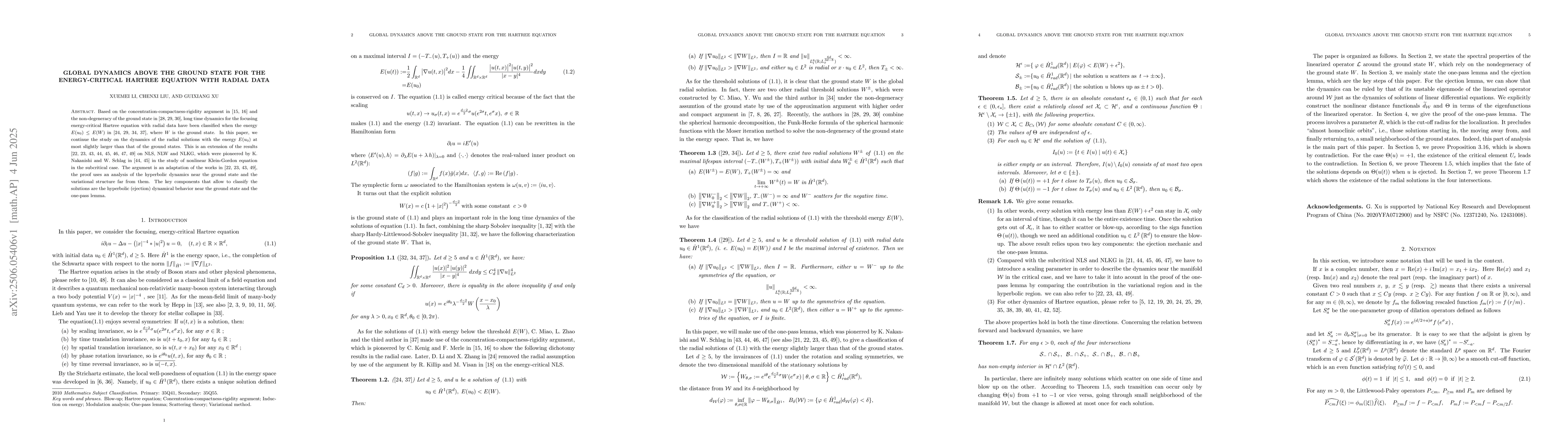 This research extends previous studies on the long-time dynamics of energy-critical Hartree equation with radial data, focusing on solutions with energy slightly above the ground state. It adapts methods from nonlinear Klein-Gordon equation studies, using hyperbolic dynamics near ground states and variational structure far from them, classifying solutions via hyperbolic (ejection) behavior and one-pass lemma.