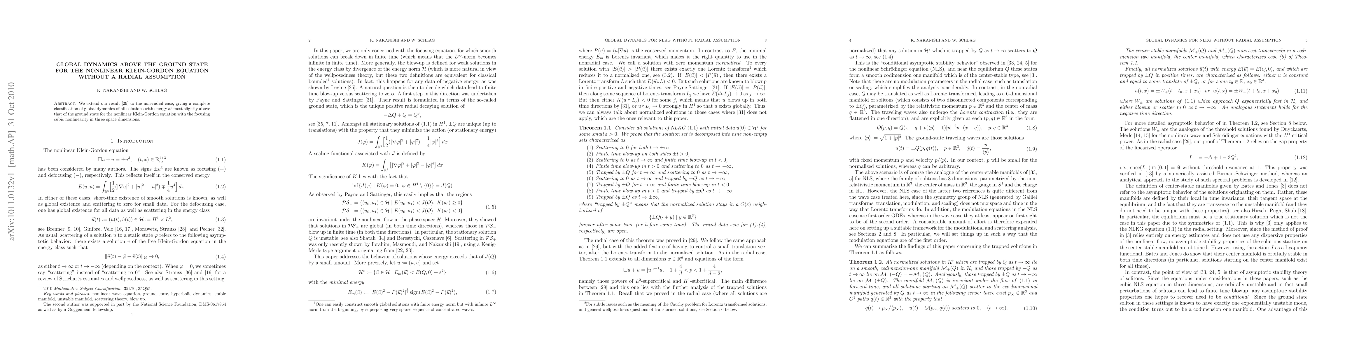 Researchers studied the behavior of solutions to a nonlinear equation, finding a complete classification of global dynamics for solutions near the ground state energy level.