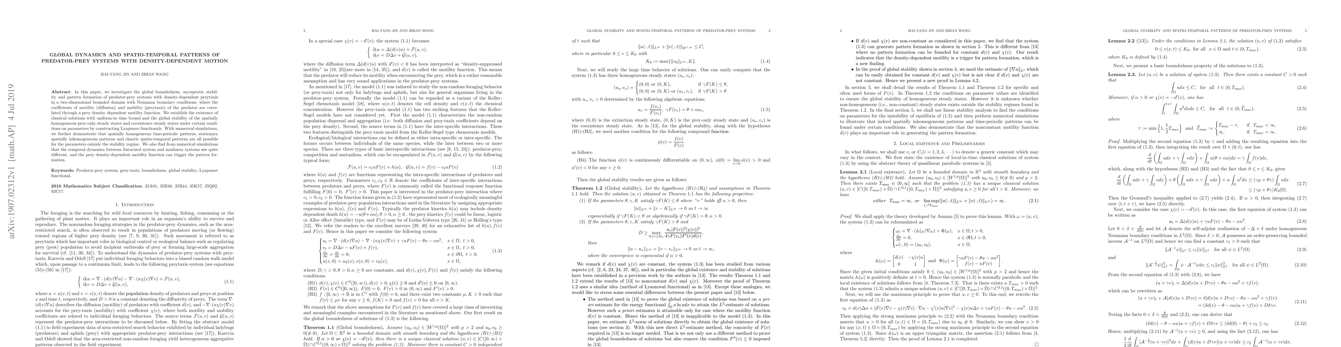 This paper examines the dynamics and pattern formation in predator-prey systems with density-dependent preytaxis, establishing global stability and exploring various spatio-temporal patterns through analytical and numerical methods. It highlights the role of a prey density-dependent motility function in triggering pattern formation.