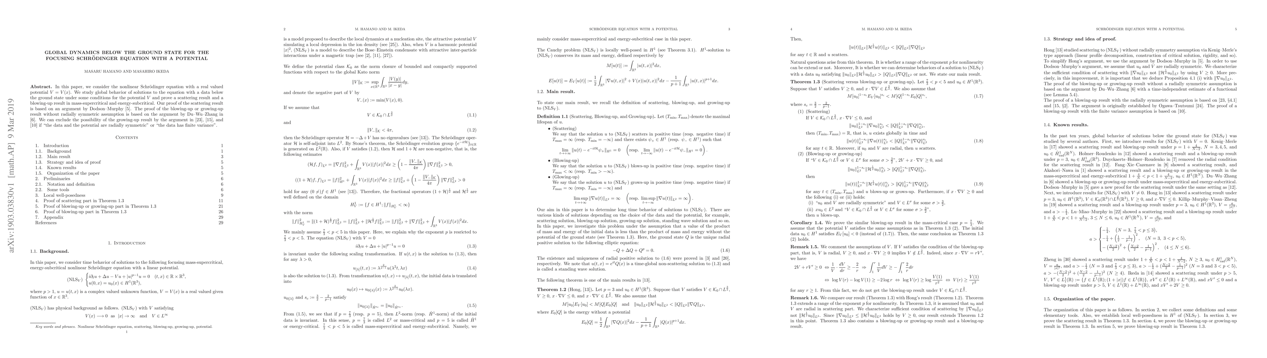 This paper studies global behavior of solutions to a nonlinear Schr"odinger equation with a real-valued potential, proving scattering and blowing-up results under certain conditions.