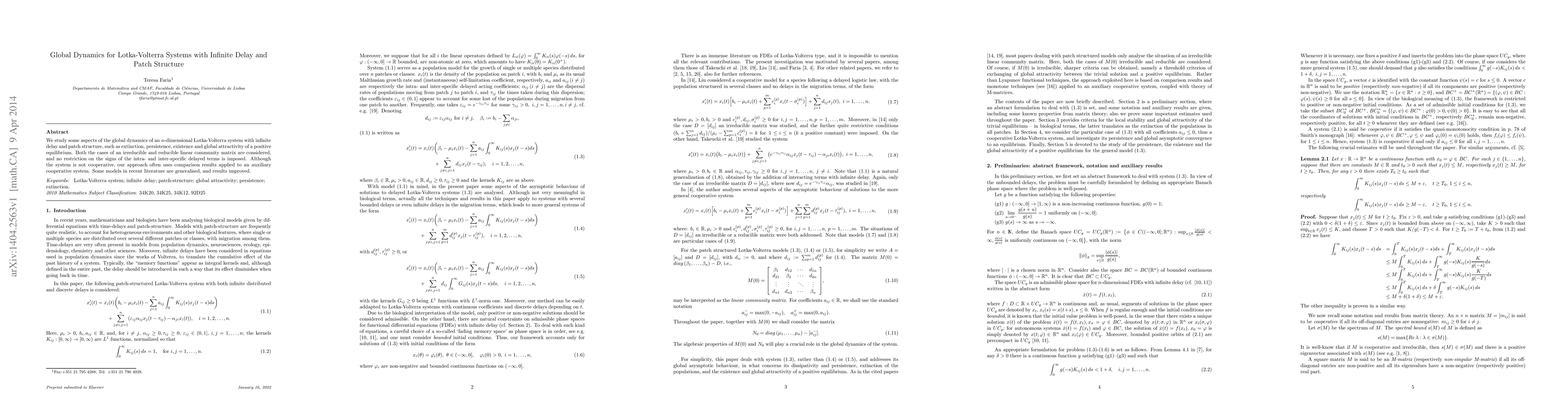 This paper investigates the global dynamics of an $n$-dimensional Lotka-Volterra system with infinite delay and patch structure, focusing on extinction, persistence, and the existence of a globally attracting positive equilibrium. It considers both irreducible and reducible linear community matrices, improving upon and generalizing some models from recent literature.