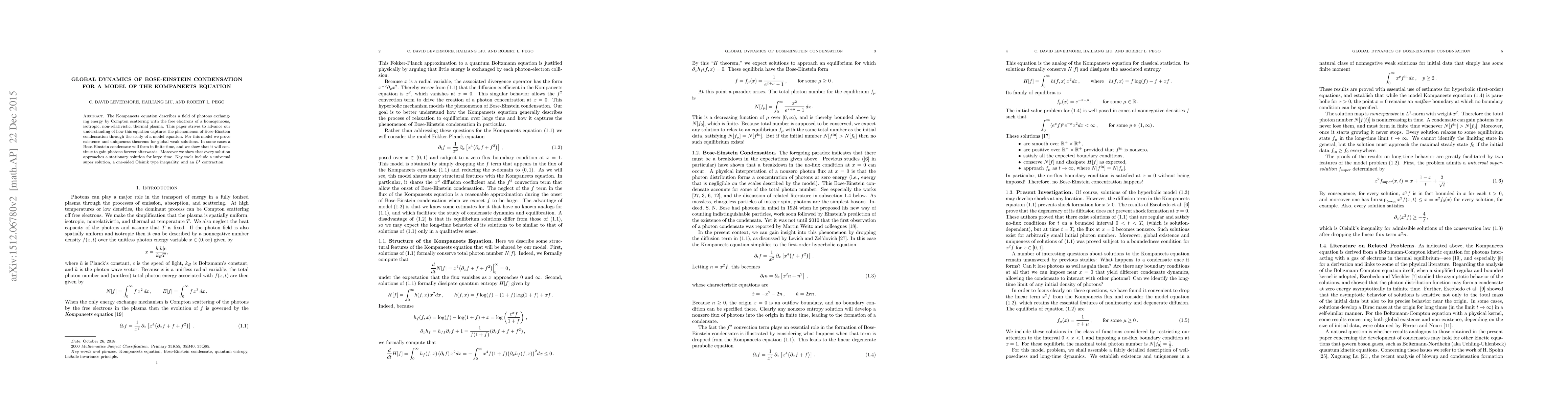 The paper introduces and proves the existence and uniqueness of global weak solutions for a model equation related to the Kompaneets equation, providing a rigorous mathematical foundation for studying BEC in plasma dynamics.