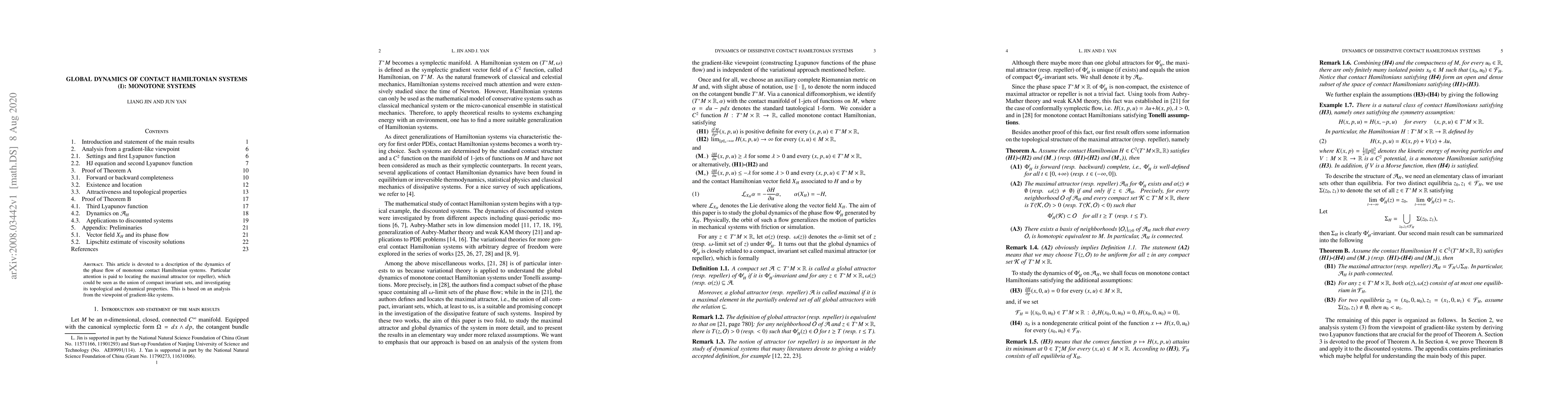This paper investigates the dynamics of monotone contact Hamiltonian systems, focusing on locating their maximal attractor and its topological properties using gradient-like systems.