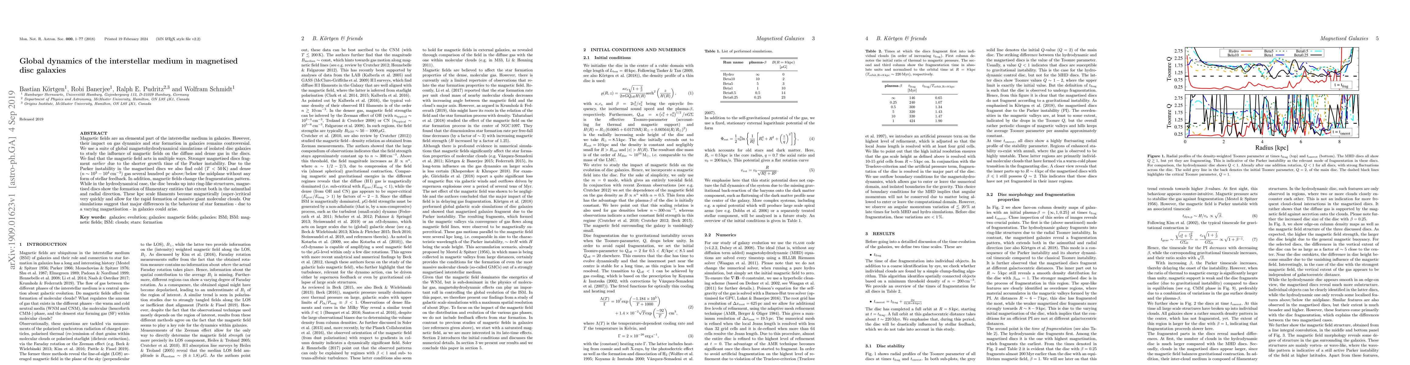 This paper investigates the role of magnetic fields in the interstellar medium of disc galaxies through global magnetohydrodynamical simulations. The study finds that magnetic fields influence gas dynamics and fragmentation, leading to the formation of cold, dense gas and filamentary structures that facilitate the rapid creation of massive molecular clouds, potentially impacting star formation rates across galaxies.